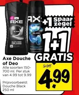 Nu in de aanbieding bij Vomar Voordeelmarkt: Axe Douche of Deo✅ Actie geldig van 1-01 t/m 3-01.