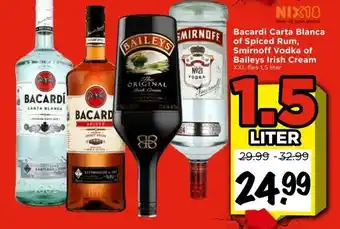 Koop Bacardi Carta Blanca of Spiced Rum, Smirnoff Vodka of Baileys Irish Cream komende week met korting