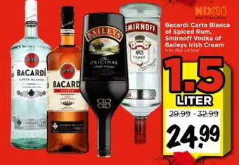 Bacardi Carta Blanca of Spiced Rum, Smirnoff Vodka of Baileys Irish Cream aanbieding bij Vomar Voordeelmarkt