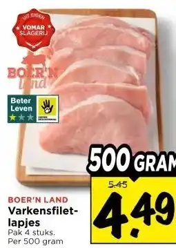 Nu in de aanbieding bij Vomar Voordeelmarkt: BOER'N LAND Varkensfilet- lapjes✅ Actie geldig van 1-02 t/m 7-02.