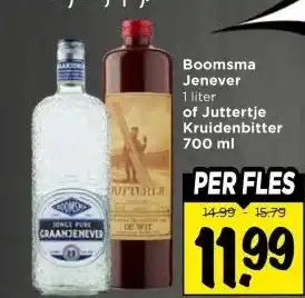 Koop Boomsma Jenever 1 liter of Juttertje Kruidenbitter 700 ml komende week met korting
