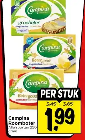 Nu in de aanbieding bij Vomar Voordeelmarkt: Campina Roomboter✅ Actie geldig van 26-04 t/m 2-05.