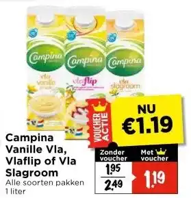 Campina Vanille Vla, Vlaflip of Vla Slagroom korting bij Vomar Voordeelmarkt