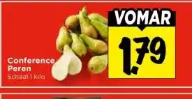 Nu in de aanbieding bij Vomar Voordeelmarkt: Conference Peren✅ Actie geldig van 16-04 t/m 18-04.