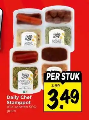 Vomar Voordeelmarkt biedt naast de Daily Chef Stamppot een ruime collectie producten aan. Houd de wekelijkse Vomar Voordeelmarkt folder in de gaten om de beste aanbiedingen en acties te vinden. Naast Daily Chef Stamppot, kunt u ook de volgende aanbiedingen vinden: Daily Chef stamppot, Daily Chef stamppot & Daily Chef stamppot.