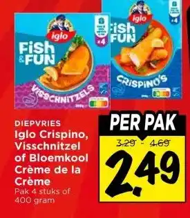 Koop DIEPVRIES Iglo Crispino, Visschnitzel of Bloemkool Crème de la Crème komende week met korting