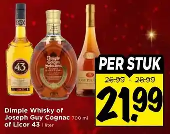Koop Dimple Whisky of Joseph Guy Cognac , of Licor 43 komende week met korting