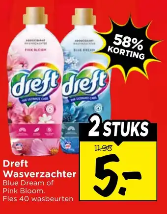 Vomar Voordeelmarkt biedt naast de Dreft wasverzachter een ruime collectie producten aan. Houd de wekelijkse Vomar Voordeelmarkt folder in de gaten om de beste aanbiedingen en acties te vinden. Naast Dreft wasverzachter, kunt u ook de volgende aanbiedingen vinden: Dreft wasverzachter, Dreft Wasverzachter Blue Dream Ultimate Care & Dreft Wasverzachter Pink Bloom Ultimate Care.