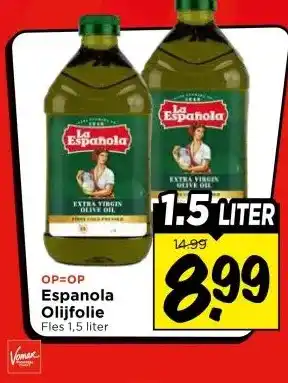 Nu in de aanbieding bij Vomar Voordeelmarkt: Espanola Olijfolie✅ Actie geldig van 1-01 t/m 3-01.