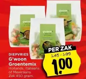 Nu in de aanbieding bij Vomar Voordeelmarkt: G'woon Groentemix✅ Actie geldig van 1-02 t/m 7-02.