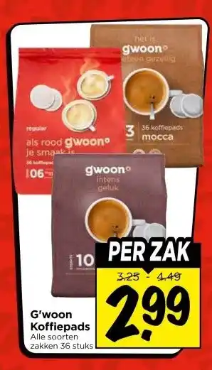 Nu in de aanbieding bij Vomar Voordeelmarkt: G'woon Koffiepads✅ Actie geldig van 18-01 t/m 24-01.