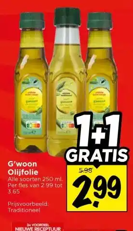 Nu in de aanbieding bij Vomar Voordeelmarkt: G'woon Olijfolie✅ Actie geldig van 26-04 t/m 2-05.