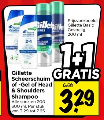 Gillette scheerschuim of gel of head & shoulders shampoo 200-300 ml 1+1 GRATIS