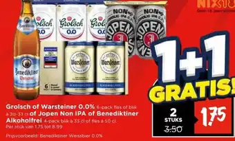 Grolsch of Warsteiner 0.0% , of Jopen Non IPA of Benediktiner Alkoholfrei aanbieding bij Vomar Voordeelmarkt