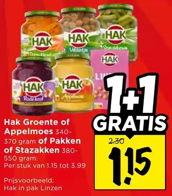 Hak Groente of Appelmoes of Pakken of Stazakken 1+1 gratis