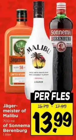 Jäger- meister of Malibu , of Sonnema Berenburg aanbieding en online acties bij Vomar Voordeelmarkt
