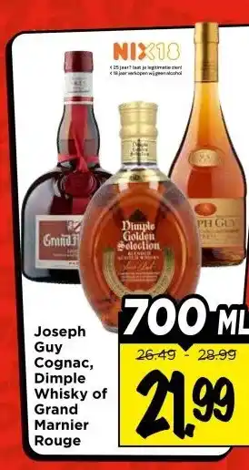 Joseph Guy Cognac, Dimple Whisky of Grand Marnier Rouge aanbieding bij Vomar Voordeelmarkt