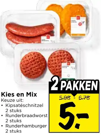 Met Kies en Mix heb je de keuze uit heerlijke vleesproducten zoals runderbraadworst en runderhamburger. Je ontvangt maar liefst 2 pakken voor een voordelige prijs van 5.98 tot 6.78. Geniet van de sappige runderbraadworst en smaakvolle runderhamburger, perfect voor een gezellige barbecue of een doordeweekse maaltijd. De kipsatéschnitzel is ook een optie om toe te voegen aan je mix. Met Kies en Mix stel je zelf je favoriete combinatie samen en bespaar je geld. De kwaliteit van het vlees is gegarandeerd vers en smaakvol. Profiteer nu van deze aanbieding en geniet van een heerlijke maaltijd met Kies en Mix!