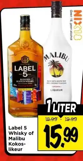 Label 5 Whisky of Malibu Kokos- likeur aanbieding bij Vomar Voordeelmarkt – binnenkort verwacht