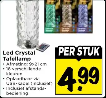 De prijs van de Led Crystal Tafellamp kan ook teruggevonden worden hierboven op de pagina, samen met de datum van wanneer de aanbieding beschikbaar is. Ook kun je de prijzen in de huidige Vomar Voordeelmarkt folder of op de Vomar Voordeelmarkt website controleren. De aanbiedingen verzekeren je van het kopen van de Vomar Voordeelmarkt producten voor de laagste prijs.