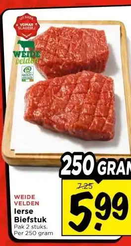 Nu in de aanbieding bij Vomar Voordeelmarkt: lerse Biefstuk✅ Actie geldig van 19-02 t/m 21-02.