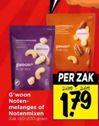Nu in de aanbieding bij Vomar Voordeelmarkt: G'woon Noten melanges of Notenmixen✅ Actie geldig van 19-02 t/m 21-02.