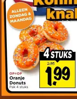 Nu in de aanbieding bij Vomar Voordeelmarkt: Oranje Donuts✅ Actie geldig van 26-04 t/m 2-05.