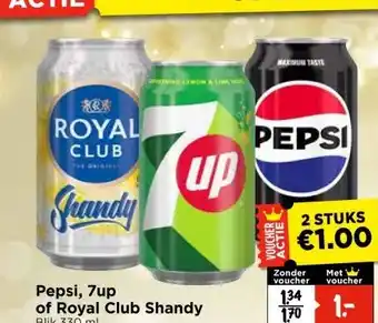 Pepsi, 7up of Royal Club Shandy aanbieding bij Vomar Voordeelmarkt