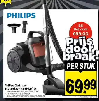 Philips Zakloze Stofzuiger XB1142/10 aanbieding bij Vomar Voordeelmarkt