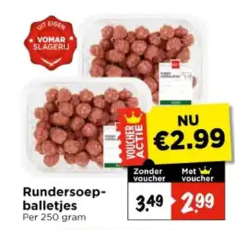 VOMAR SLAGERIJ Rundersoep- balletjes Per 250 gram ACTIE NU €2.99