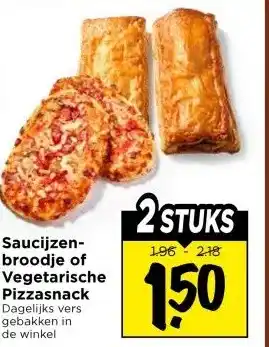 Nu in de aanbieding bij Vomar Voordeelmarkt: Saucijzen- broodje of Vegetarische Pizzasnack✅ Actie geldig van 26-02 t/m 28-02.