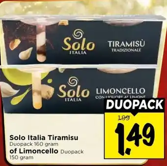 Nu in de aanbieding bij Vomar Voordeelmarkt: Solo Italia Tiramisu , of Limoncello✅ Actie geldig van 18-12 t/m 20-12.
