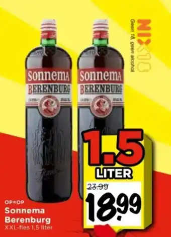 Geniet van de heerlijke smaak van Sonnema Berenburg met deze XXL-fles van 1,5 liter. Perfect voor een gezellige avond met vrienden of familie. Sonnema Berenburg is een traditionele Friese kruidenbitter met een unieke smaak. Let op: Geen 18, geen alcohol. NIX18. Deze XXL-fles is nu tijdelijk verkrijgbaar voor slechts 18.99 in plaats van 23.99. Wees er snel bij, want OP=OP! Haal deze grote fles Sonnema Berenburg in huis en geniet van de authentieke smaak van dit Friese drankje. Proost op mooie momenten en gezelligheid met Sonnema Berenburg!