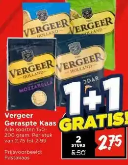 Nu in de aanbieding bij Vomar Voordeelmarkt: Vergeer Geraspte Kaas✅ Actie geldig van 19-04 t/m 25-04.