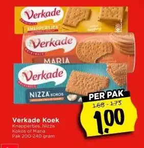 De aanbieding is verkrijgbaar in verschillende winkels, bekijk alle producten om de goedkoopste Verkade Koek te krijgen. Als je graag wilt kijken of het artikel met meer korting te koop is in een andere winkel, bekijk de categorie 'Supermarkt'. Wellicht vind je deze aanbiedingen ook interessant: Oreo koek, Verkade Knappertjes & Verkade Maria.