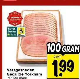 Nu in de aanbieding bij Vomar Voordeelmarkt: Versgesneden Gegrilde Yorkham✅ Actie geldig van 19-04 t/m 25-04.