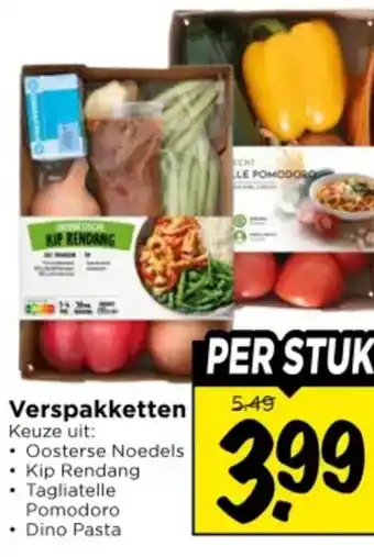 Ontdek de heerlijke wereld van verspakketten met keuze uit verschillende smaken zoals Kip Rendang, Che en Le Pomodoro. Maak eenvoudig en snel een smaakvolle maaltijd met de Oosterse Noedels, Tagliatelle of Pomodoro Dino Pasta. Elk verspakket bevat alle verse ingrediënten die je nodig hebt, inclusief een duidelijk recept. Geniet van de authentieke smaken en aroma's van de wereldkeuken, zonder urenlang in de keuken te hoeven staan. Bestel jouw favoriete verspakket nu voor slechts €5.49 per stuk en verras jezelf en je gasten met een heerlijke maaltijd. Met de verspakketten van Kip Rendang, Che en Le Pomodoro wordt koken een feestje!