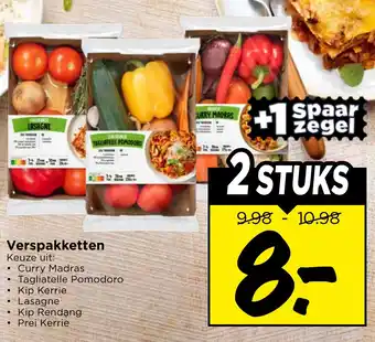 Met onze Verspakketten heb je keuze uit verschillende smaken zoals WORST, CURRY MADRAS, LASAGNE, TAGLIATELLE POMODORO en meer. Kies bijvoorbeeld voor een pittige Curry Madras, een romige Tagliatelle Pomodoro of een klassieke Lasagne. Elk pakket bevat alle verse ingrediënten die je nodig hebt, inclusief een duidelijke receptkaart. Zo zet je gemakkelijk en snel een heerlijke maaltijd op tafel. De Verspakketten zijn geschikt voor 2 personen en kosten slechts 9.98 per pakket. Profiteer nu van onze actie: 2 STUKS voor maar 8-. Verzamel de zegels en geniet van de smaakvolle gerechten die je met onze Verspakketten kunt bereiden. Bestel snel en geniet van een culinair avontuur thuis!