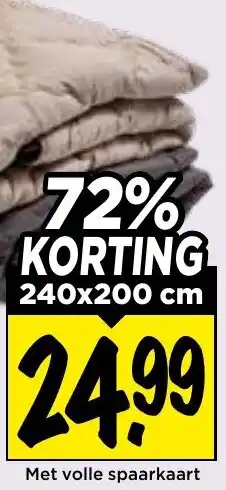 Profiteer nu van een geweldige aanbieding op ons wasbare dekbed met maar liefst 72% KORTING! Dit dekbed is verkrijgbaar voor slechts 14.99 in plaats van 24.99. Het dekbed is van hoge kwaliteit en kan eenvoudig in de wasmachine worden gereinigd, waardoor het altijd fris en schoon blijft. Met dit dekbed geniet je van een comfortabele nachtrust het hele jaar door. Bovendien ontvang je bij aankoop van dit dekbed een volle spaarkaart, waarmee je kunt sparen voor leuke extra's. Wacht niet langer en bestel dit wasbare dekbed met 72% KORTING vandaag nog en slaap binnenkort als een roos!