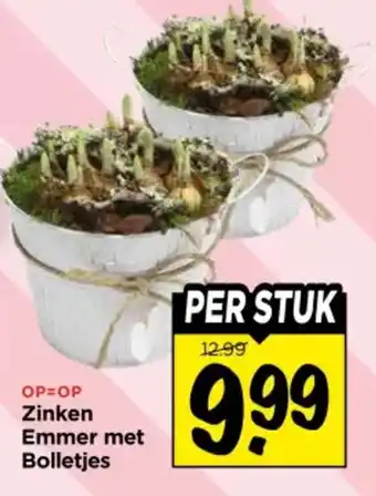 De aanbieding is verkrijgbaar in verschillende winkels, bekijk alle producten om de goedkoopste Zinken Emmer met Bolletjes te krijgen. Als je graag wilt kijken of het artikel met meer korting te koop is in een andere winkel, bekijk de categorie 'Supermarkt'. Wellicht vind je deze aanbiedingen ook interessant: Zinken Emmer met Bolletjes, Bloembollen in zinken emmer & EMMER.