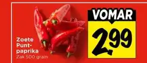 Nu in de aanbieding bij Vomar Voordeelmarkt: Zoete Punt- paprika✅ Actie geldig van 23-04 t/m 25-04.