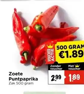 Nu in de aanbieding bij Vomar Voordeelmarkt: Zoete Puntpaprika✅ Actie geldig van 8-03 t/m 14-03.