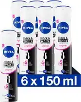 NIVEA Invisible Black & White Clear deodorant spray - 6 x 150 ml - voordeelverpakking aanbieding bij Wehkamp