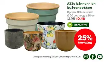 Alle binnen en buitenpotten Ø 20 x 20 cm