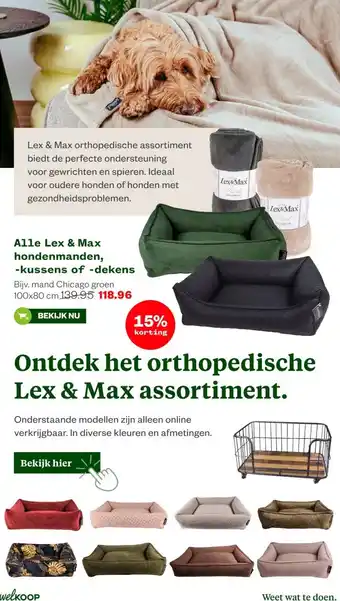 De prijs van de Alle Lex & Max hondenmanden, -kussens of -dekens kan ook teruggevonden worden hierboven op de pagina, samen met de datum van wanneer de aanbieding beschikbaar is. Ook kun je de prijzen in de huidige Welkoop folder of op de Welkoop website controleren. De aanbiedingen verzekeren je van het kopen van de Welkoop producten voor de laagste prijs.