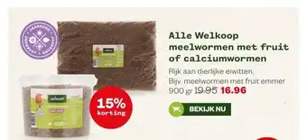 Alle Welkoop meelwormen met fruit of calciumwormen aanbieding bij Welkoop