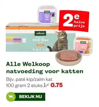 De prijs van de Alle Welkoop natvoeding voor katten kan ook teruggevonden worden hierboven op de pagina, samen met de datum van wanneer de aanbieding beschikbaar is. Ook kun je de prijzen in de huidige Welkoop folder of op de Welkoop website controleren. De aanbiedingen verzekeren je van het kopen van de Welkoop producten voor de laagste prijs.
