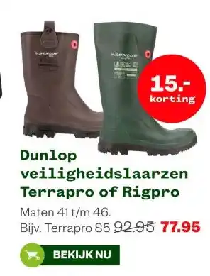 Dunlop veiligheidslaarzen Terrapro of Rigpro aanbieding en online acties bij Welkoop
