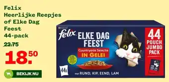 De aanbieding is verkrijgbaar in verschillende winkels, bekijk alle producten om de goedkoopste Felix Heerlijke Reepjes of Elke Dag te krijgen. Als je graag wilt kijken of het artikel met meer korting te koop is in een andere winkel, bekijk de categorie 'Tuin en Dier'. Wellicht vind je deze aanbiedingen ook interessant: Felix Heerlijke reepjes farm selectie in saus, Felix Heerlijke reepjes vis selectie in saus & Felix kattenvoer in saus heerlijke reepjes vis adult 80 g 12 stuks.
