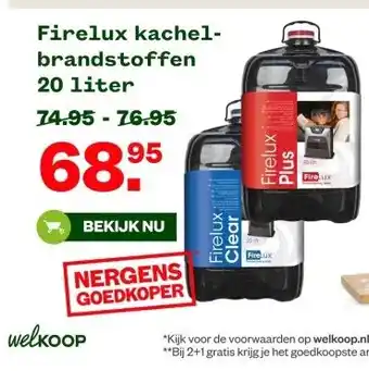 De prijs van de Firelux kachel-brandstoffen kan ook teruggevonden worden hierboven op de pagina, samen met de datum van wanneer de aanbieding beschikbaar is. Ook kun je de prijzen in de huidige Welkoop folder of op de Welkoop website controleren. De aanbiedingen verzekeren je van het kopen van de Welkoop producten voor de laagste prijs.